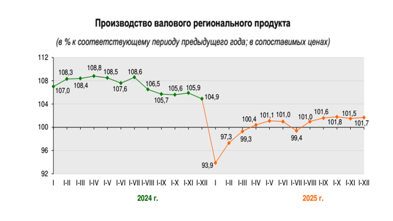 Объем валового регионального продукта в январе – декабре 2025 г. составил 29,4 млрд. рублей, или 101,7% к уровню января – декабря 2024 года.